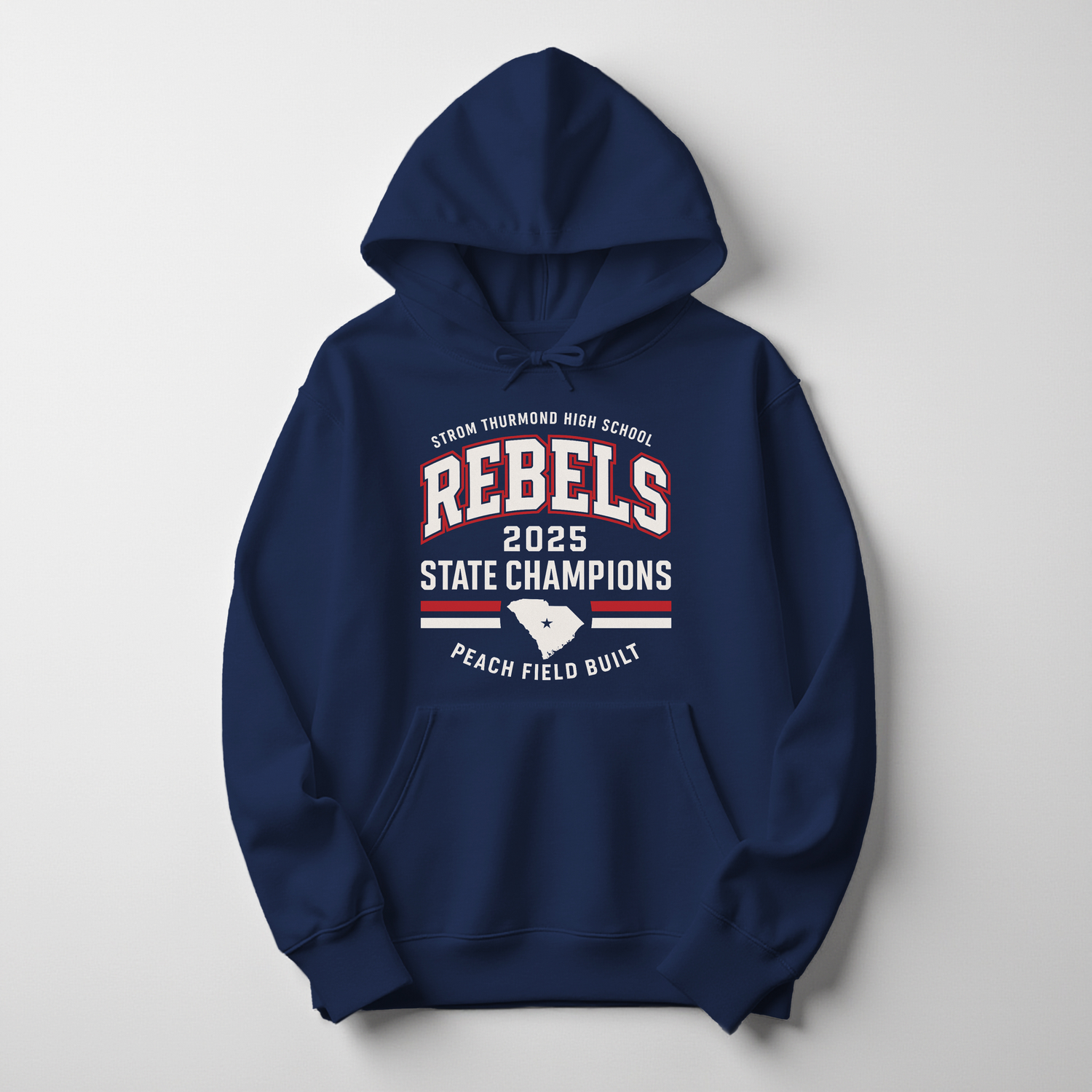 Created by a proud STHS alum, this championship tee features bold Rebels-inspired graphics, premium print quality, and a soft unisex fit perfect for alumni, students, parents, and fans who want to honor the 2025 State Champions. Enjoy comfortable everyday wear and exclusive Peach Field Built design elements that reflect true Rebel pride. Orders ship quickly so you can rep the win without the wait.